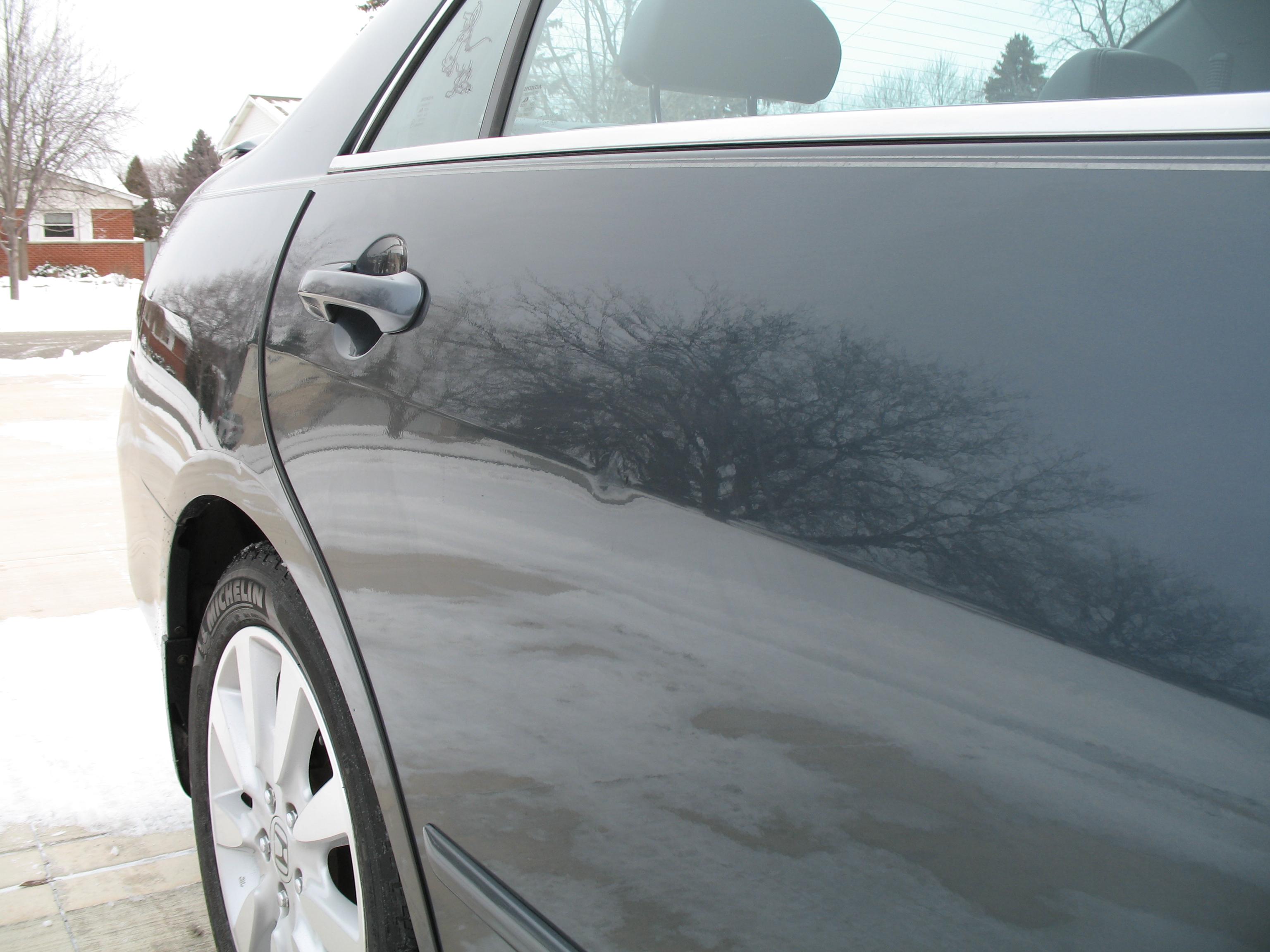 Is it my car’s coconut air freshener that draws them in? A whiff of BP regular unleaded, my brand of preference? No, it must be my Ford Full-Synthetic Oil…Mustang musk, Oily Old Spice. Vehicular pheromones at work perhaps. Disgusting. And futile.  Companionship, romance, I’m not sure which, but just like for humans, this kind of parking lot sparking often leaves permanent scars.