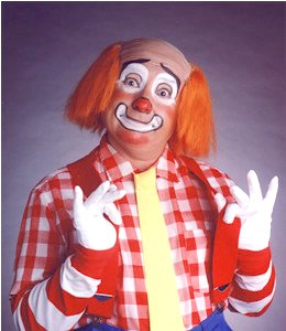 What???!!! I was horrified! Not what I was expecting. Cookie the Clown? Not even Oliver O. Oliver, another of Bozo’s clown pea-dogs? Yes, I remembered Cookie from the Chicago Bozo’s Circus show. And I reluctantly realized the resemblance. Started hunting backstage for some clippers right then.