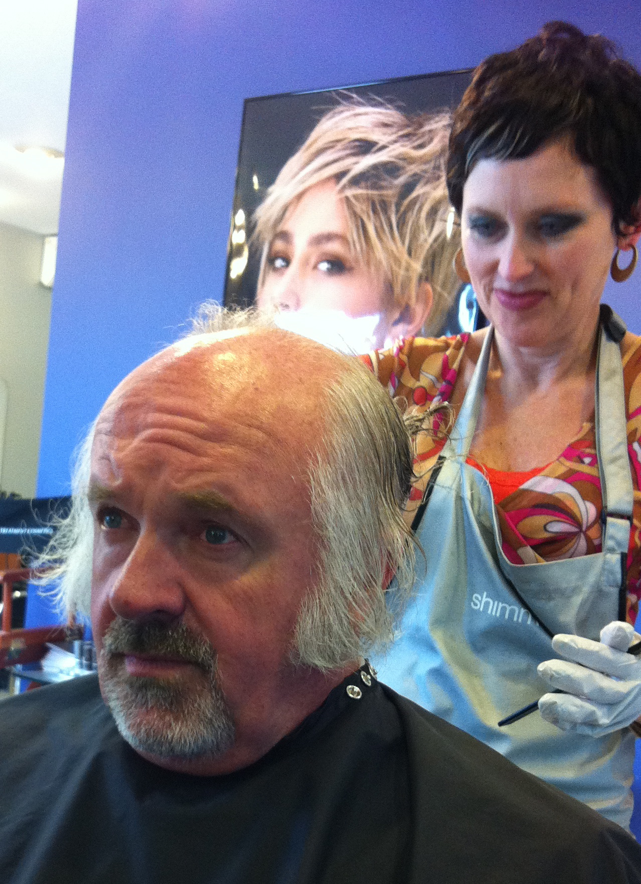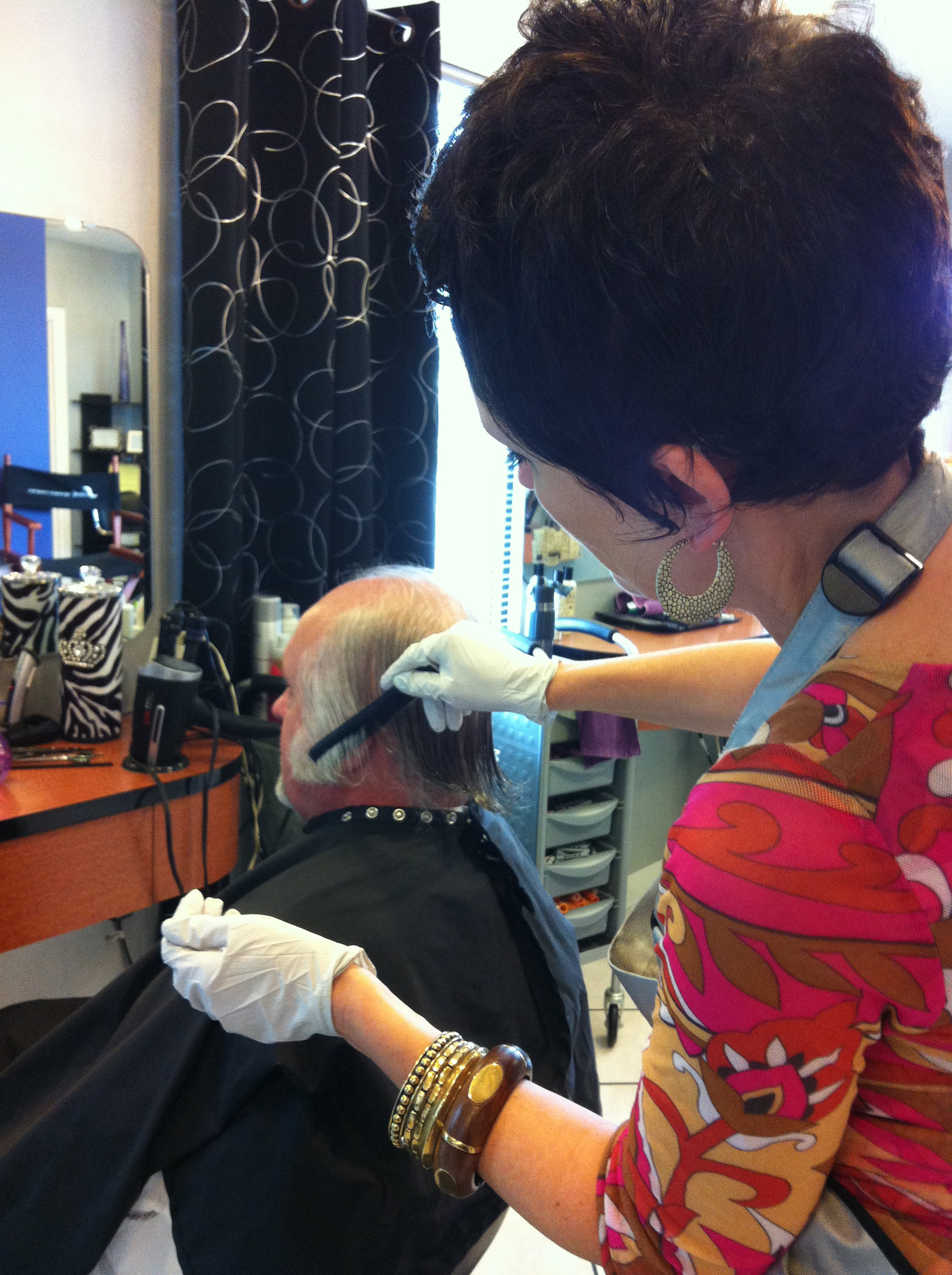 Next was my own personal consultation with Janeen regarding “the cut.” She had me at a disadvantage as I sat there in her chair with a soggy head. Still, I gave her free reign. “No cutting it short. Longer hair fits your personality,” she said. Okay, Janeen now had a new fan. Cut away!