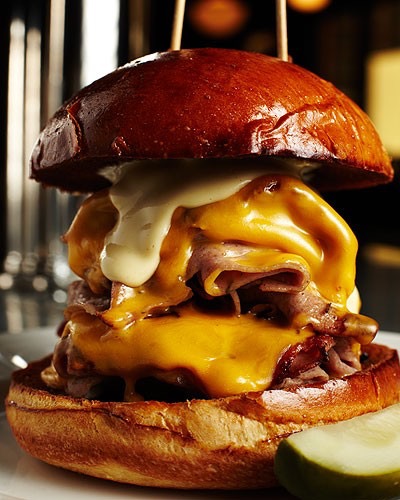 om bologna to roasted marrow bones to foie gras to cheeseburgers. They have a very cool interior look with an even more cool vintage reel-to-reel tape sound system. And they seem to always have a line out the door. To get in, I had to look the part of course, me being the master of disguise and all. Didn’t want to be conspicuous. Chicago Magazine named this sandwich number two on their 2012 Best Sandwiches” list. Eater Chicago named it number one. Whoa. “Thought your bologna-eating days had retired with your lunchbox? Luscious house-cured mortadella dotted with black pepper, sliced thin, and piled into layers on a spongy brioche bun should put you right back in the game. No thermos necessary,” Chicago Magazine. Eater Chicago adds, “Like most dishes at Au Cheval, it’s a gutbuster.” Still, this bologna sandwich is just too hipster-uppity for me. It tastes good, it’s just not the bologna of my people. And it’s so tall I wasn’t sure how to eat it. 3-1/2 thick-cut slices.