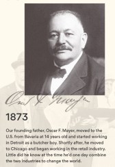 Hold it. That didn’t come out quite right. “Aw, baloney!” sounds like some Baptist-approved G-rated somewhat powerless expletive. Not what I meant! Nope. Shoulda been, “Ahhhhhhh, bologna!” There. Much, much better. Just those one and half words make all the difference. They are the Yellow Mustard Road to the Land of Lunchmeat. And we are absolutely off to see the Wizard. Of course, you know this wizard, one famous bologna name. I will say it now with magnified reverence. Pausing for effect. This man is the Daniel Boone of Bologna. The Christopher Columbus of Cold Cuts. Dang it! I wanted to get Davy Crockett in there, too. Oh, why not? The Davy Crockett of Cheap Chow. Yes, he is none other than Oscar Mayer, Sandwich Explorer and Baron of Bologna (no, not Italy), lauded and revered for Americanizing bologna. Thank you, Oscar (let’s all sing his 1976 jingle about our bologna’s name…go ahead, embrace your inner Liza Minelli and let it fly).