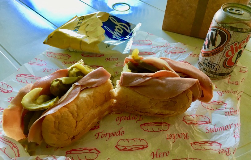 Bologna Submarine Sandwich. My hometown place has been around for at least 50 years, no exaggeration. And I’ve been buying their submarine sandwiches since I was 16. They heap meat on their sandwiches. A lot of meat. If the meat on a typical Subway sandwich is a marble; the meat on a typical Super Submarine sandwich is a big ol’ bowling ball. This a unique family-owned sandwich shop to be sure. Now, you probably wouldn’t just wander in there unless you were sent. I’m sending you. Not for the bologna sandwich, though. My favorites here are hot beef, ham & cheese, and barbeque beef. Always with pickles and peppers. The Reuben is great, too. They have many others. All on delicious Vienna bread. Their bologna-only sandwich is just okay. Lots of un-fried bologna for sure, great bread, and you can add mustard and/or mayo. Here, I’ll stick to hot beef, pickles and peppers, please. Oh. They only take cash. Though it greatly pains me to say anything bad about Super Submarine, I give their bologna sandwich just 2-1/2 thick-cut slices.